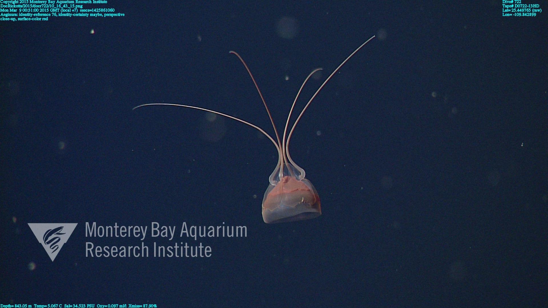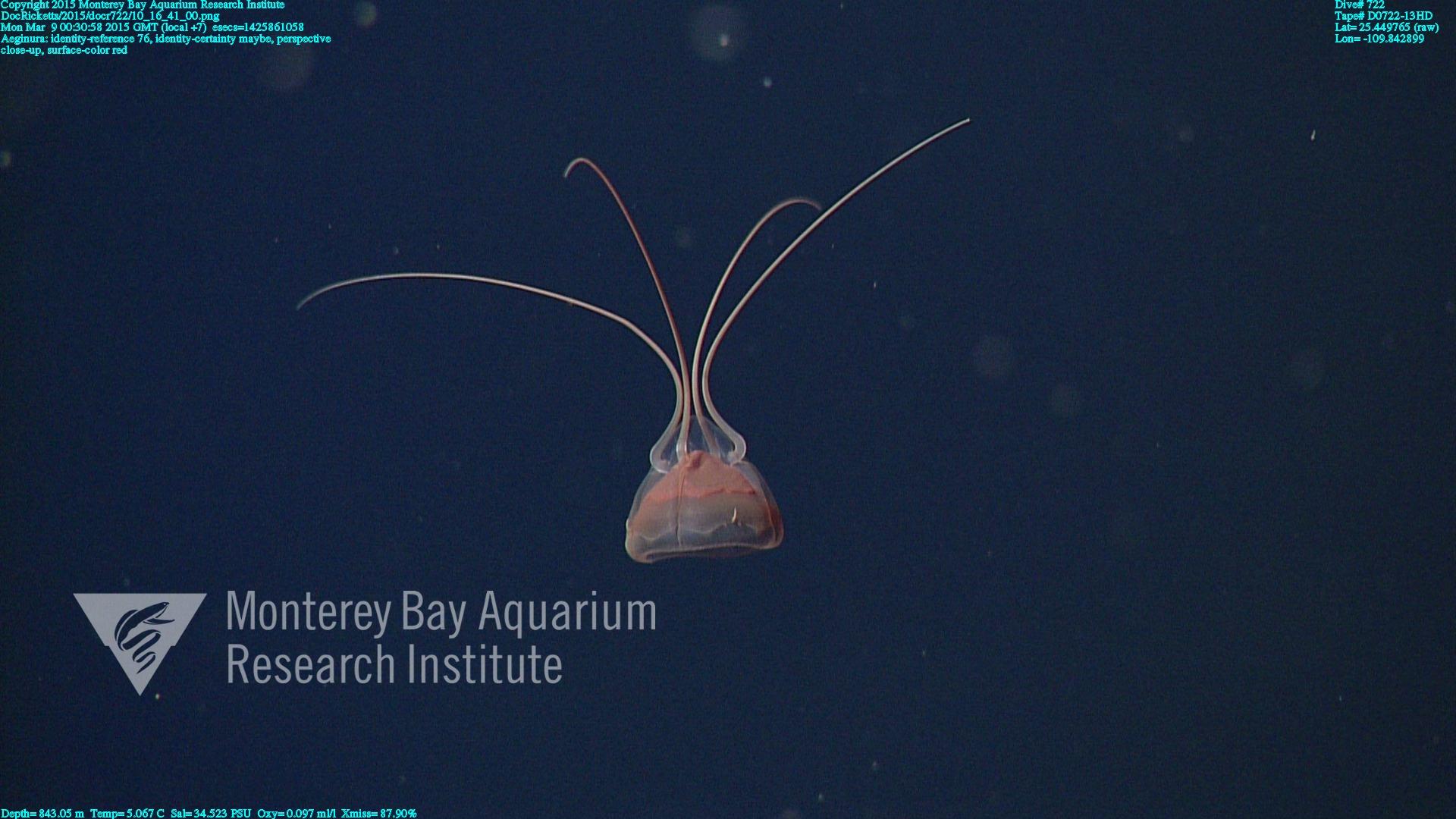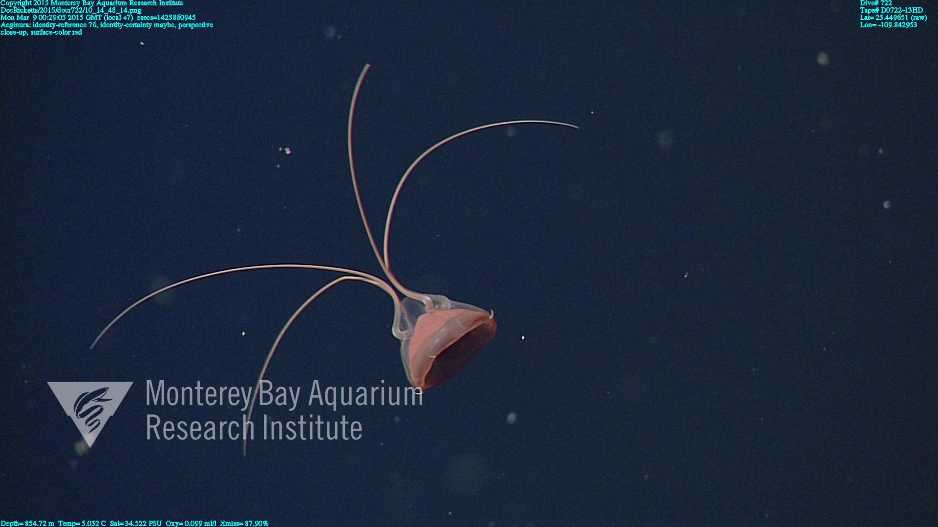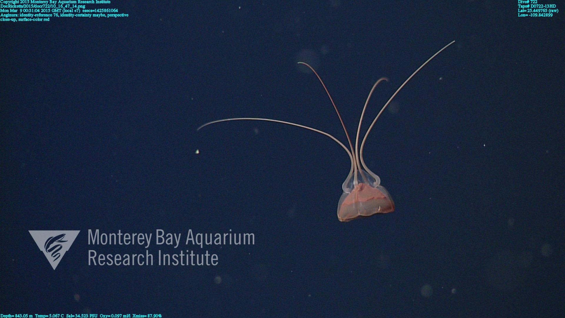 These select images are representative highlights from our Video Annotation and Reference System (VARS) database. Identifications may be subject to change as observational techniques improve over time; consequently, the overlay information may be outdated until reprocessing of images can occur. More information: Data Use and Citation.