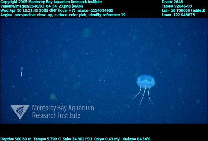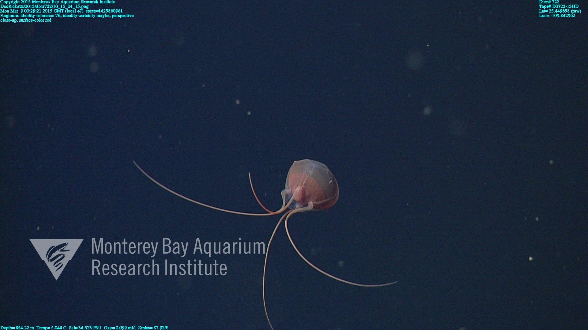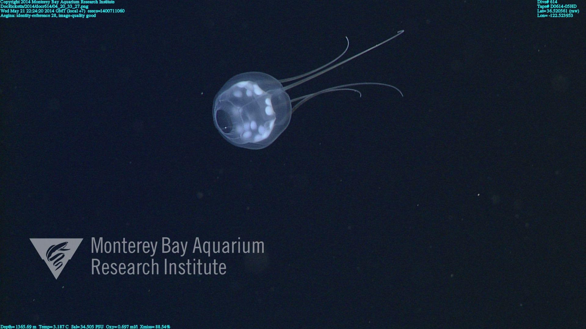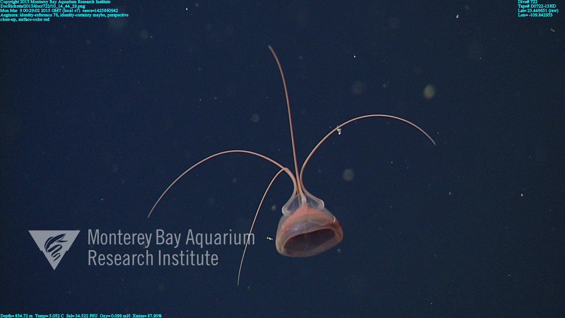 These select images are representative highlights from our Video Annotation and Reference System (VARS) database. Identifications may be subject to change as observational techniques improve over time; consequently, the overlay information may be outdated until reprocessing of images can occur. More information: Data Use and Citation.