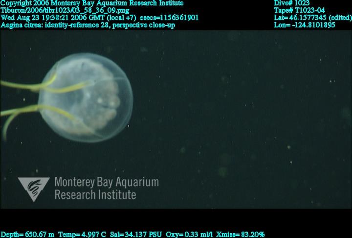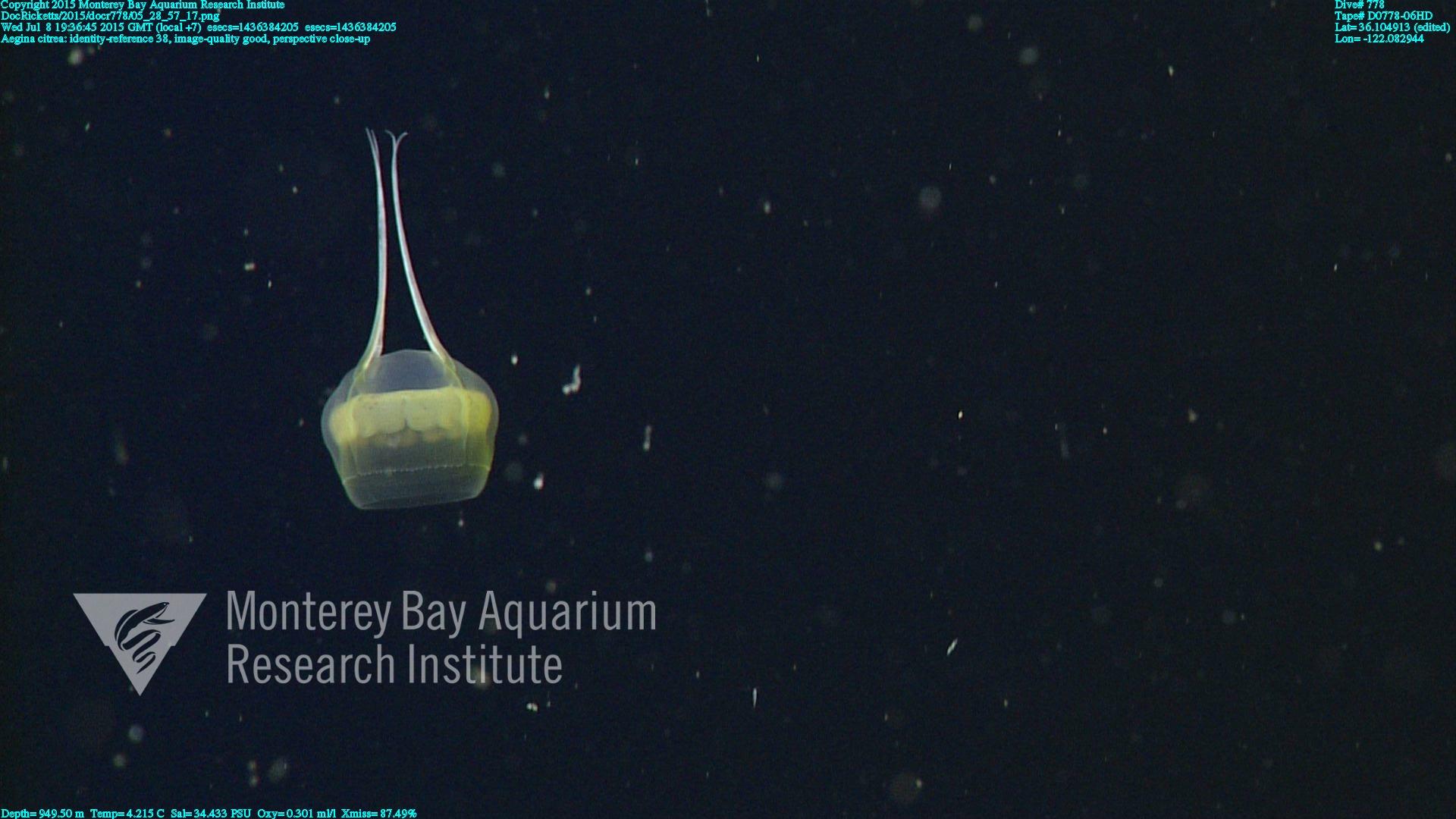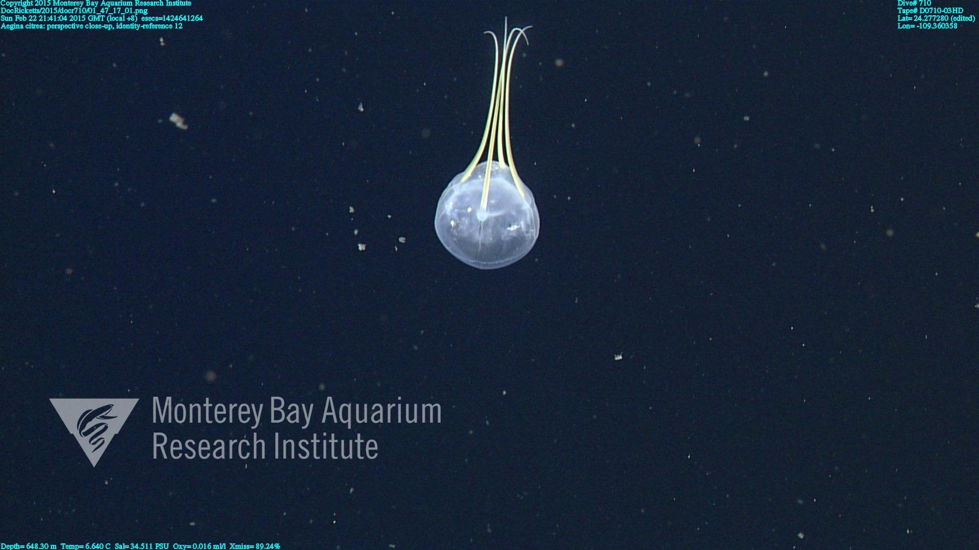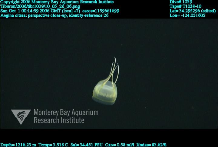 These select images are representative highlights from our Video Annotation and Reference System (VARS) database. Identifications may be subject to change as observational techniques improve over time; consequently, the overlay information may be outdated until reprocessing of images can occur. More information: Data Use and Citation.