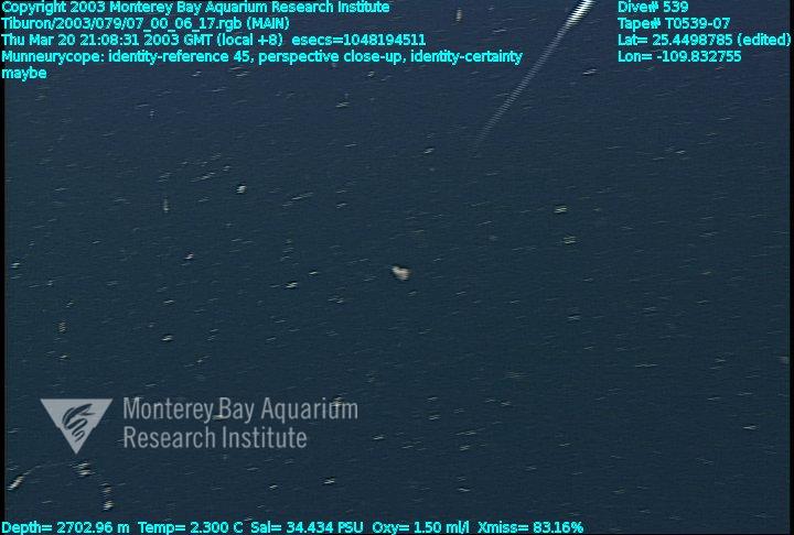 These select images are representative highlights from our Video Annotation and Reference System (VARS) database. Identifications may be subject to change as observational techniques improve over time; consequently, the overlay information may be outdated until reprocessing of images can occur. More information: Data Use and Citation.
