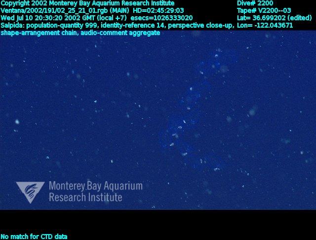 These select images are representative highlights from our Video Annotation and Reference System (VARS) database. Identifications may be subject to change as observational techniques improve over time; consequently, the overlay information may be outdated until reprocessing of images can occur. More information: Data Use and Citation.