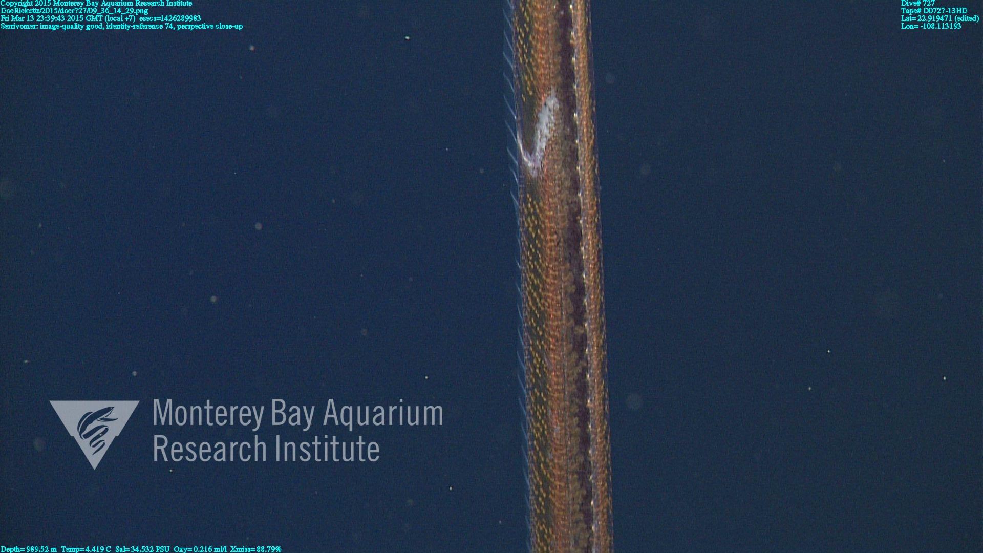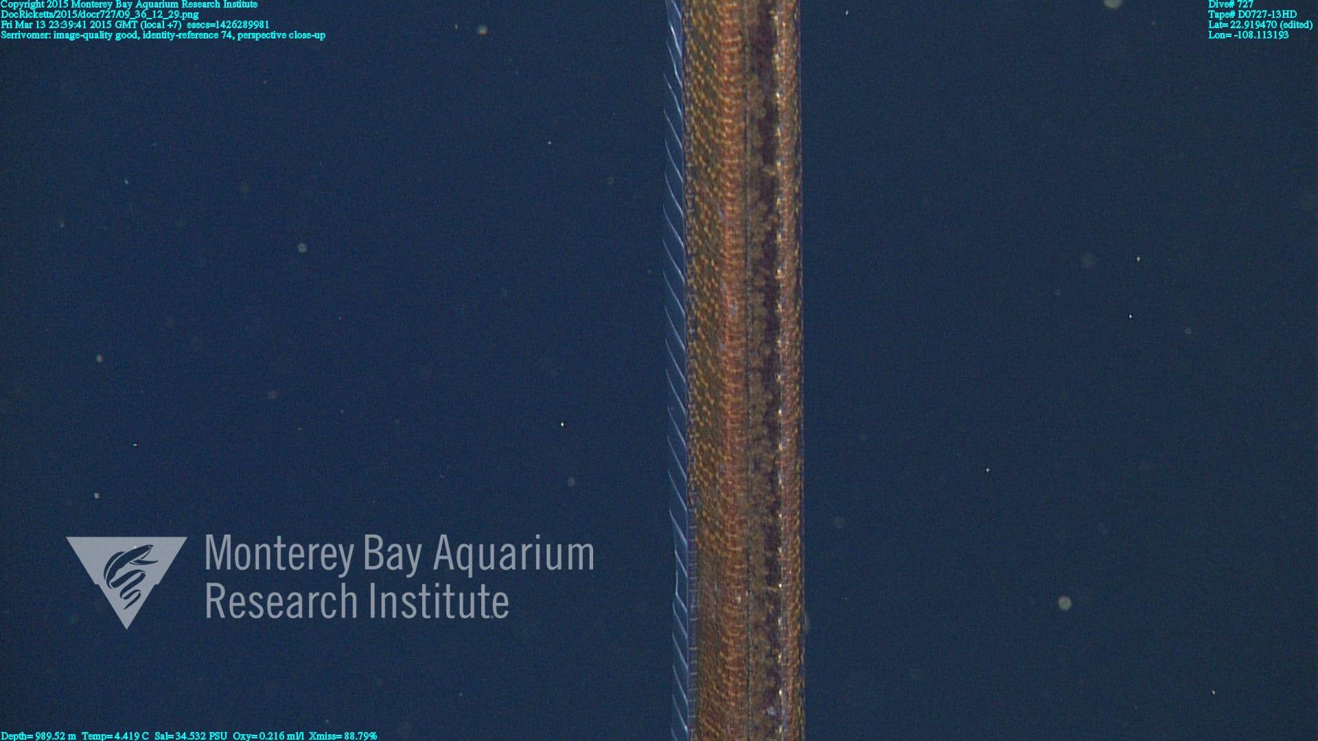 These select images are representative highlights from our Video Annotation and Reference System (VARS) database. Identifications may be subject to change as observational techniques improve over time; consequently, the overlay information may be outdated until reprocessing of images can occur. More information: Data Use and Citation.