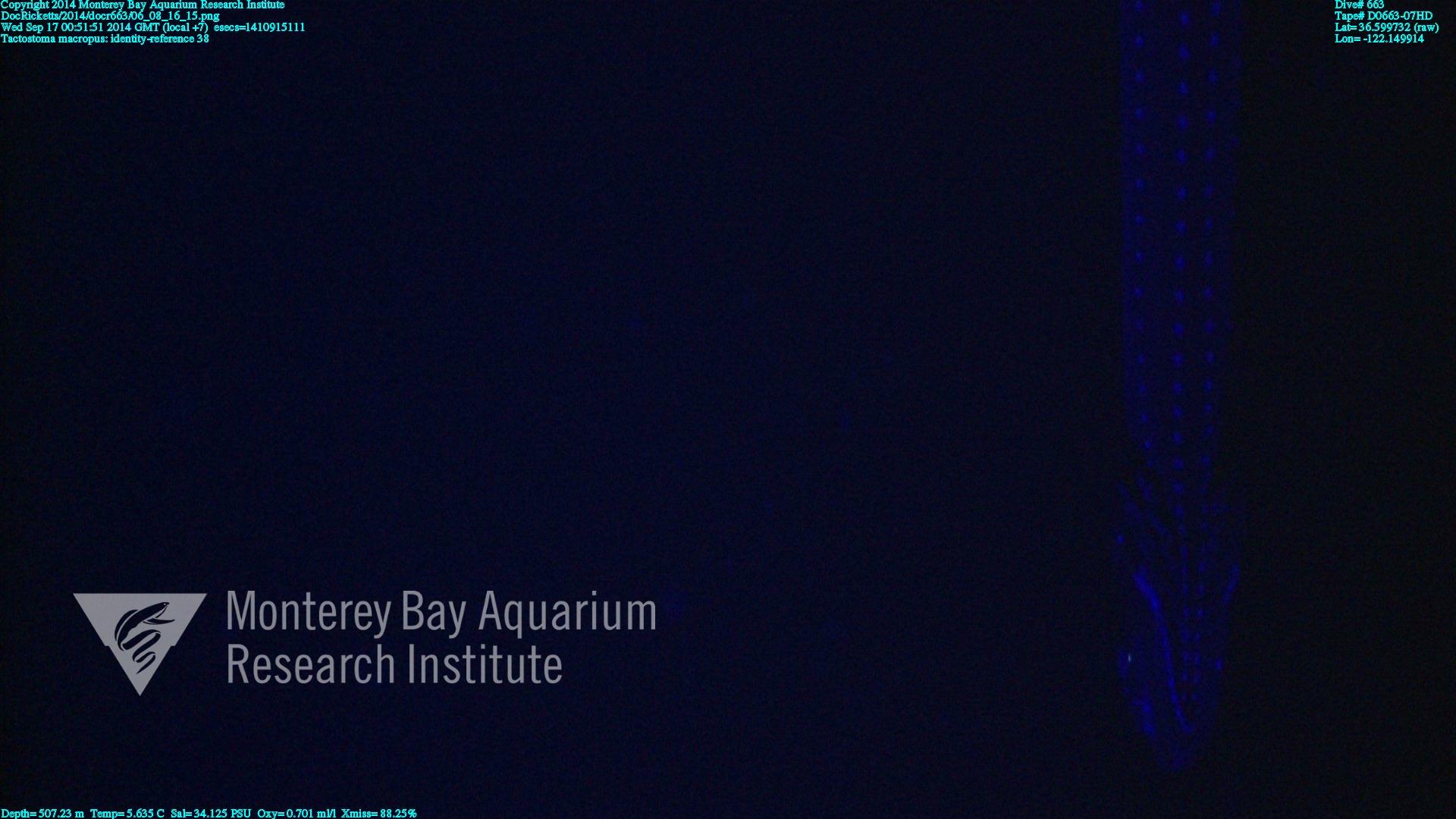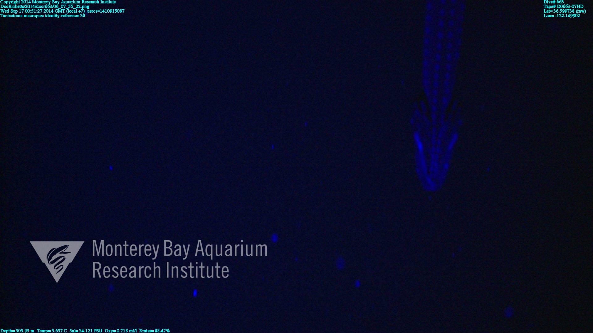 These select images are representative highlights from our Video Annotation and Reference System (VARS) database. Identifications may be subject to change as observational techniques improve over time; consequently, the overlay information may be outdated until reprocessing of images can occur. More information: Data Use and Citation.