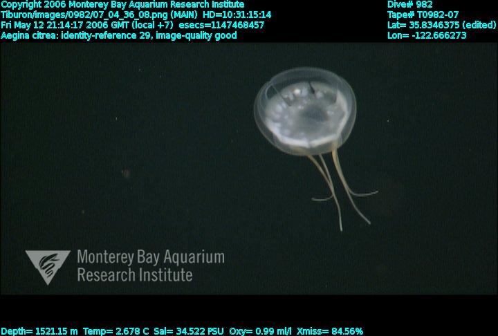 These select images are representative highlights from our Video Annotation and Reference System (VARS) database. Identifications may be subject to change as observational techniques improve over time; consequently, the overlay information may be outdated until reprocessing of images can occur. More information: Data Use and Citation.